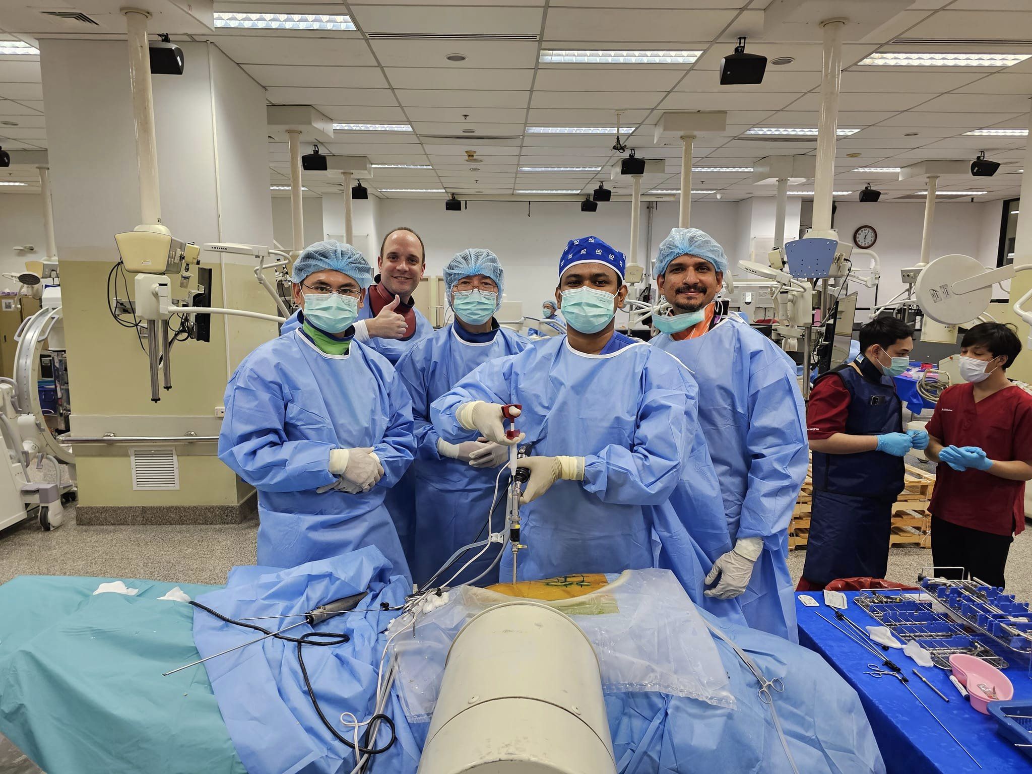 During cadaver course on endoscopic spine surgery in Bangkok, Thailand
