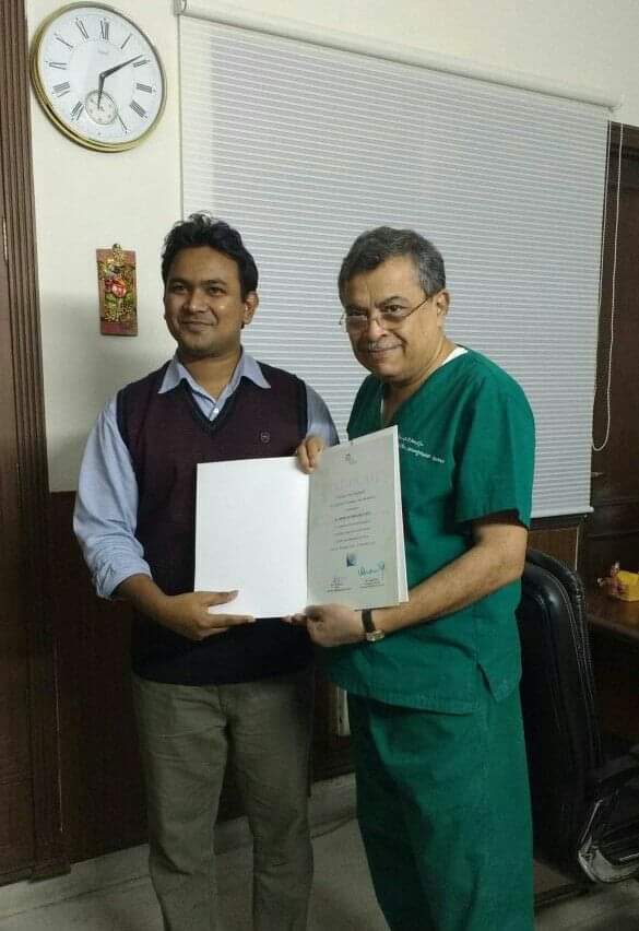 Taking FIPM certificate from Prof. Dr. G. P. Dureja after successful completion of fellowship training on interventional pain management in December 2016 at Delhi, India.