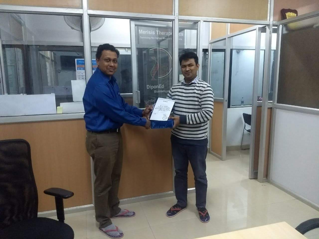 Taking certificate on Diploma in Regenerative Medicine in Bengalore in 2018